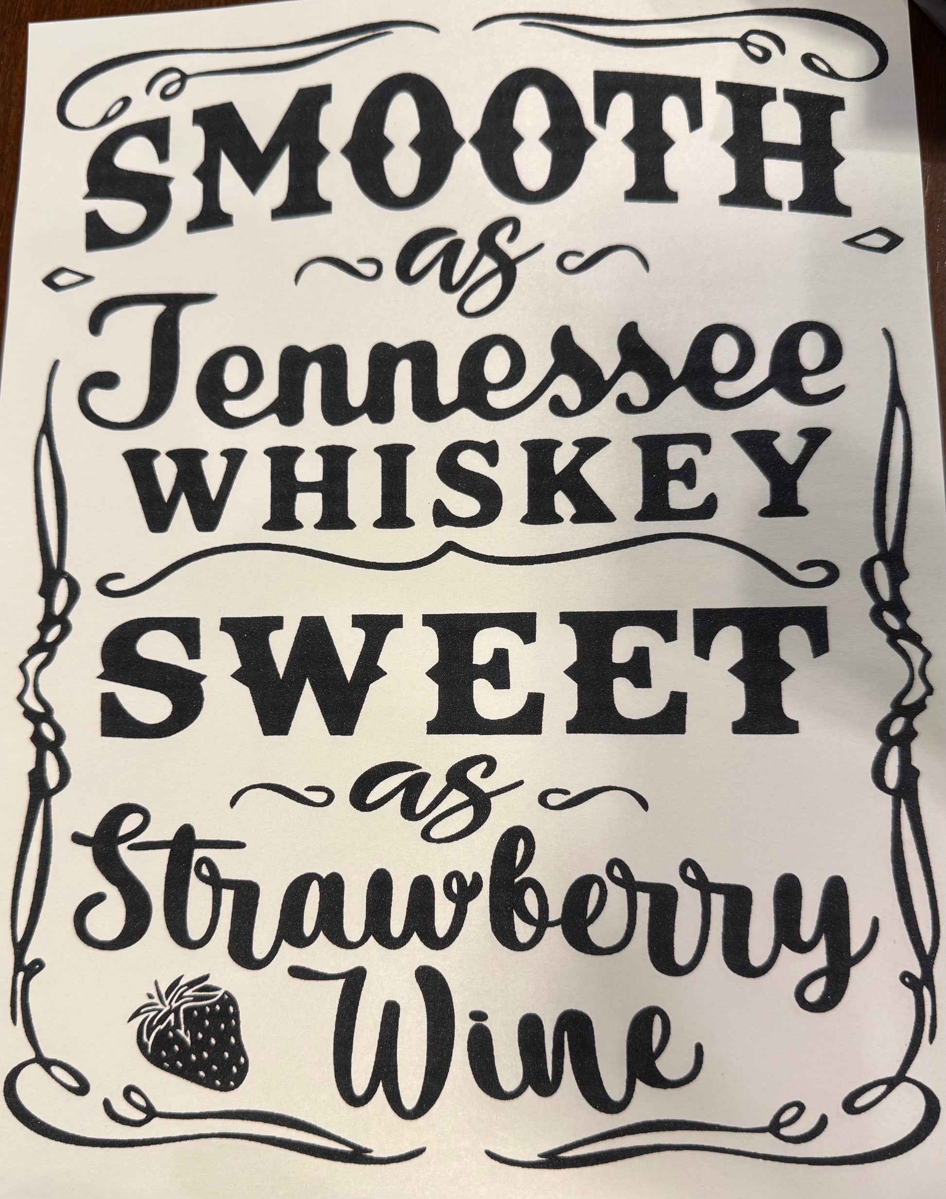 Screen Print Transfer Design S238- Smooth As Tennessee Whiskey Sweet as Strawberry Wine